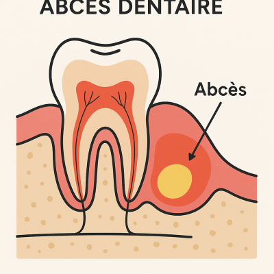 Origine de l'Infection : Un abcès dentaire se forme lorsque des bactéries infectent la pulpe dentaire ou les tissus parodontaux, souvent à cause de caries profondes, de maladies des gencives ou de traumatismes dentaires.